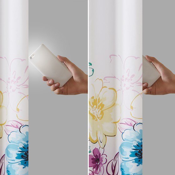 Intelligent Design Olivia Total Blackout Window panel uses bright colors and an asymmetrical floral design to brighten up your space. Pops of teal, green, fuchsia and yellow flowers adorn one side of the panel, creating contrast against the white ground for an abstract look. Finished with a heavy 3 pass foamback liner, this panel is 100% total blackout for a maximum barrier against all exterior light and noise intrusion for the utmost privacy, while the thermal technology provides energy efficiency. Grommet top makes this panel easy to hang, open, and close through the day; fits up to a standard 1.25" diameter rod. Machine washable for easy care; complete the collection with coordinating bedding and shower curtain sold separately.